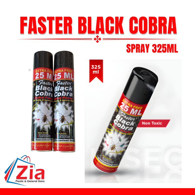 Faster Black Cobra wipes out all crawling and flying insects in your home with its fast action unique formula,