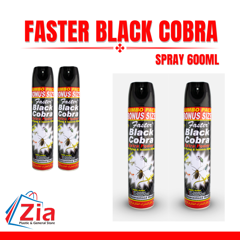 Faster Black Cobra wipes out all crawling and flying insects in your home with its fast action unique formula,