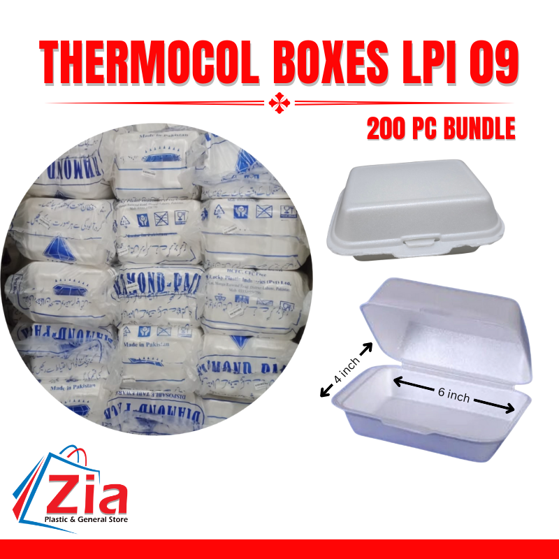 A Thermocol LPI-09 Box is a durable, lightweight, and hygienic food packaging box made from thermocol (EPS foam). It is ideal for packing rice, biryani, fast food, and takeaway meals. Widely used by restaurants, catering services, and food delivery businesses, it keeps food fresh and safe during transport.