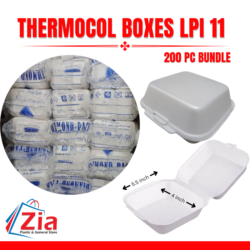 A Thermocol LPI-11 Box is a durable, lightweight, and hygienic food packaging box made from thermocol (EPS foam). It is ideal for packing rice, biryani, fast food, and takeaway meals. Widely used by restaurants, catering services, and food delivery businesses, it keeps food fresh and safe during transport.