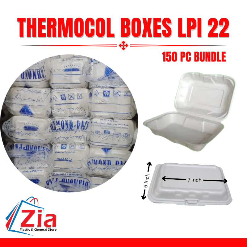 A Thermocol LPI-22 Box is a durable, lightweight, and hygienic food packaging box made from thermocol (EPS foam). It is ideal for packing rice, biryani, fast food, and takeaway meals. Widely used by restaurants, catering services, and food delivery businesses, it keeps food fresh and safe during transport.